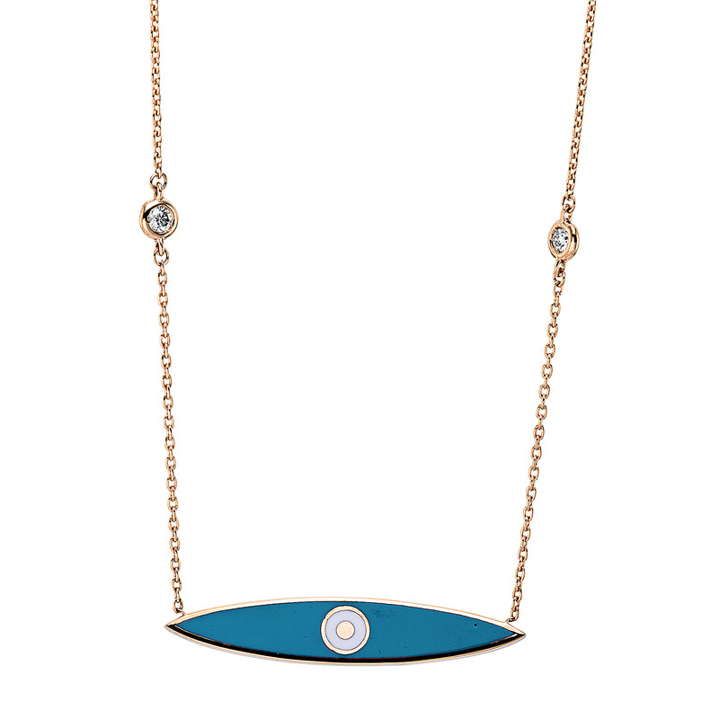 necklace 14 kt RG, 2 diamonds 0,08 ct, G-si, 1 turquoise, l:42,0 cm