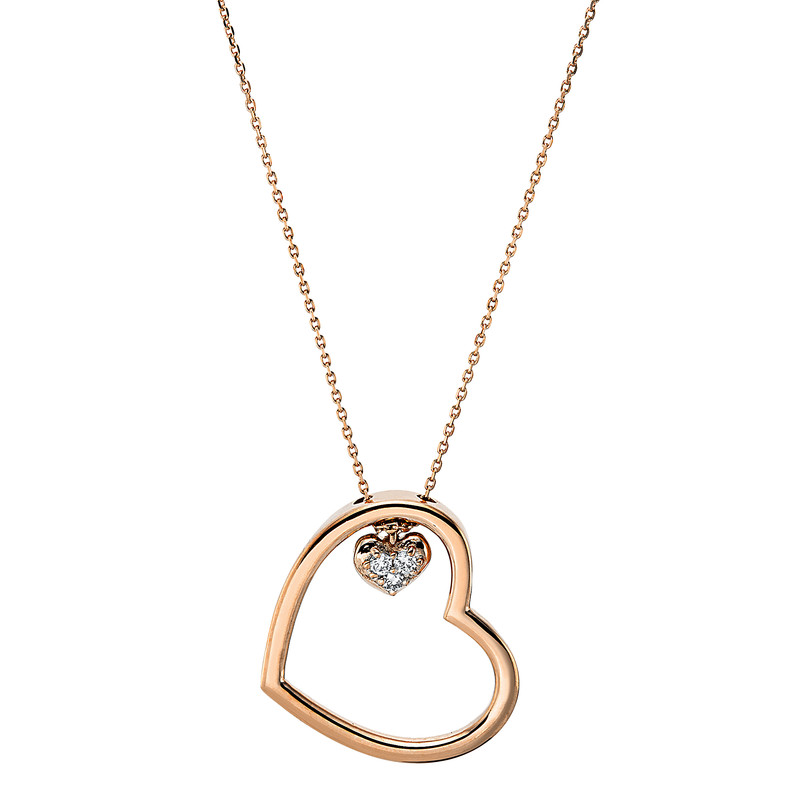necklace 14 kt RG+WG "heart", 3 diamonds 0,04 ct, G-si, l:42,0 cm