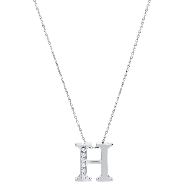 necklace 14 kt WG "H", 6 diamonds 0,04 ct, G-si, h:9,6 mm, w:9,7 mm, l:42 cm