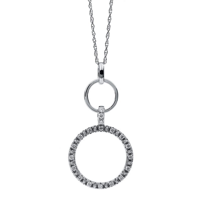 necklace 14 kt WG "circle", 19 diamonds 0,14 ct, G-si, h:30,8 mm, w:15,9 mm, l:46 cm