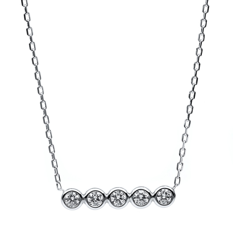 necklace 14 kt WG, eye 40 + 42,5 cm, 5 diamonds 0,29 ct, G-si, h:3,6 mm, w:18,0 mm, l:45,0 cm