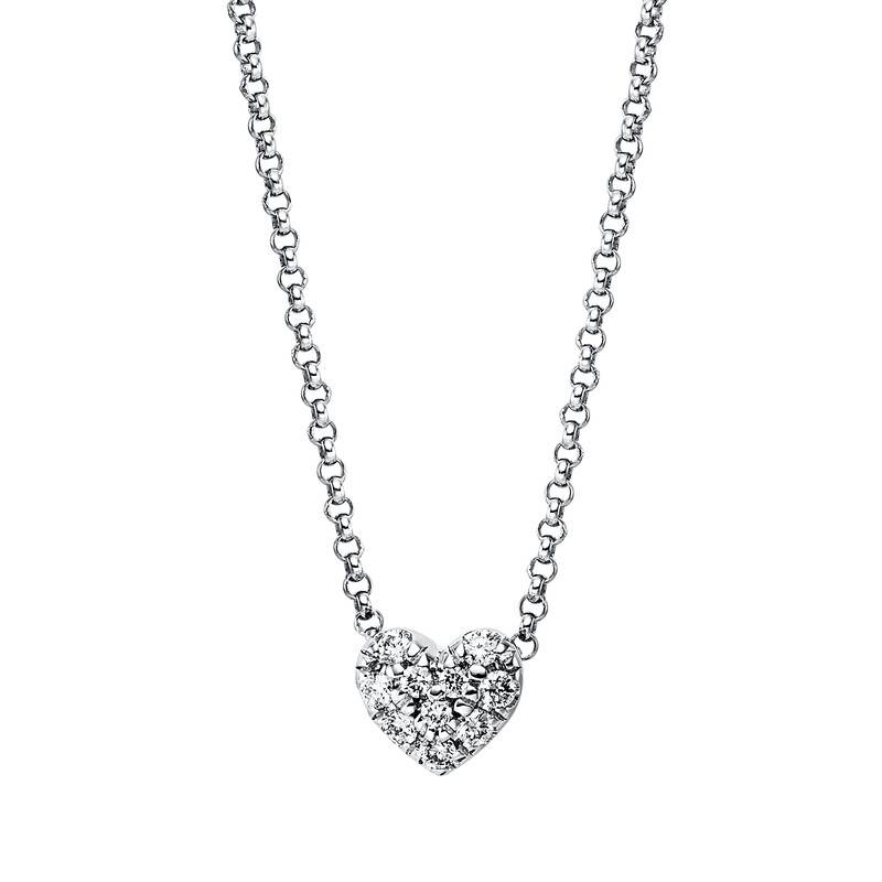 necklace 14 kt WG "heart", 10 diamonds 0,07 ct, h:4,8 mm, w:5,4 mm, l:44,0 cm