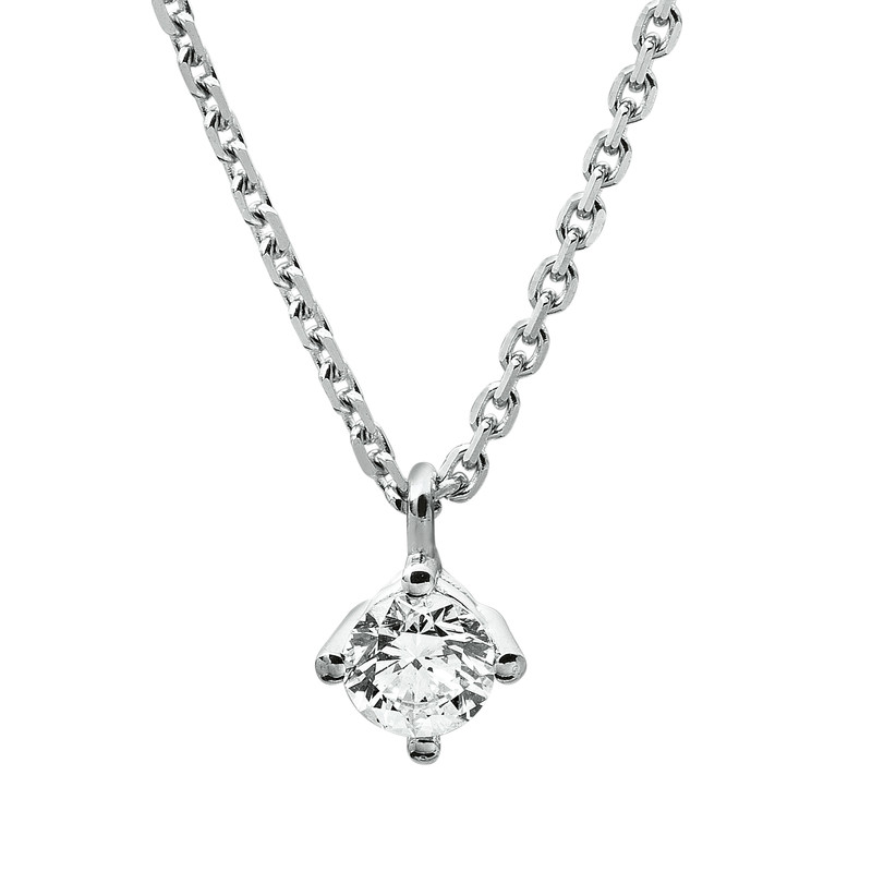 necklace 14 kt WG, 1 diamond 0,15 ct, G-si, h:6,0 mm, l:42,0 cm, Ø:4,4 mm