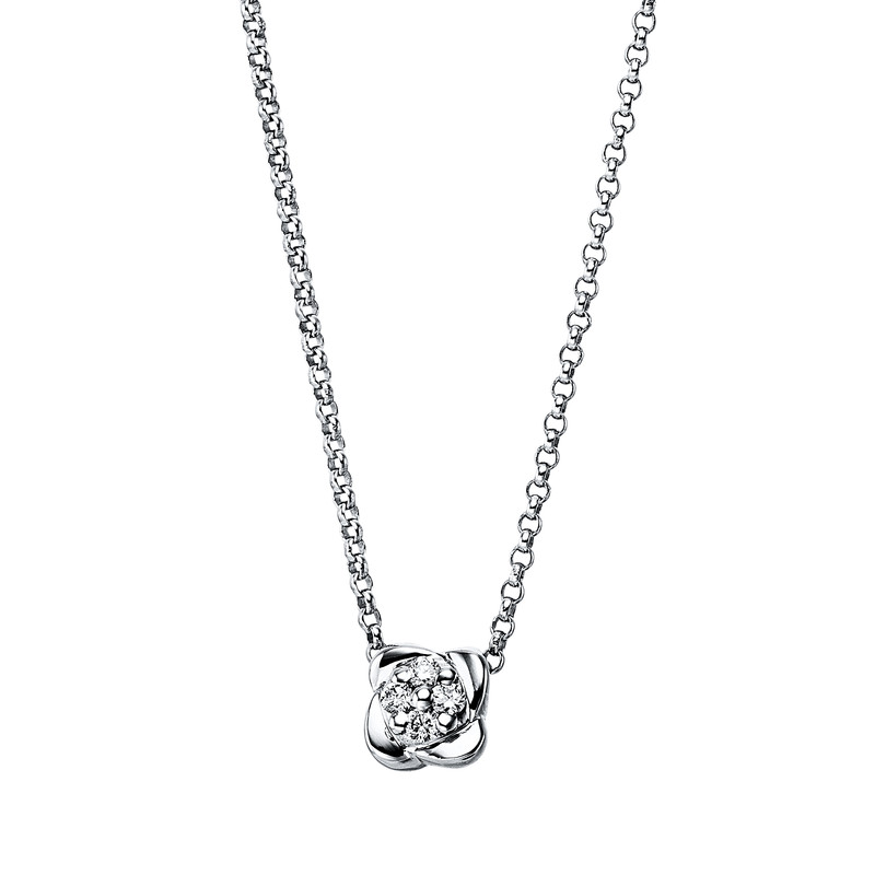 necklace 14 kt WG, 4 diamonds 0,04 ct, G-si, h:4,7 mm, w:4,7 mm, l:46,0 cm