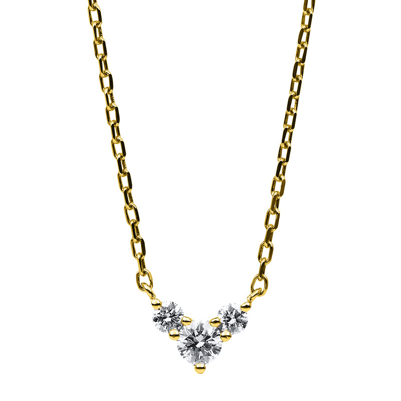 necklace 14 kt YG, 1 diamond 0,13 ct, G-si, 2 diamonds 0,08 ct, G-si, l:45,0 cm