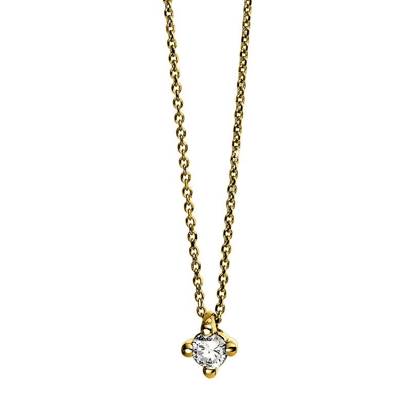 necklace 14 kt YG, 1 diamond 0,07 ct, G-si, h:4,2 mm, w:3,3 mm, l:42,0 cm