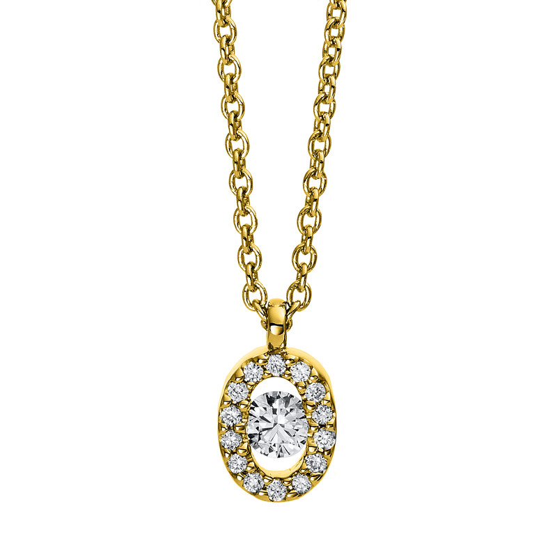 necklace 14 kt YG, 15 diamonds 0,10 ct, G-si, h:8,0 mm, w:4,6 mm, l:42,0 cm