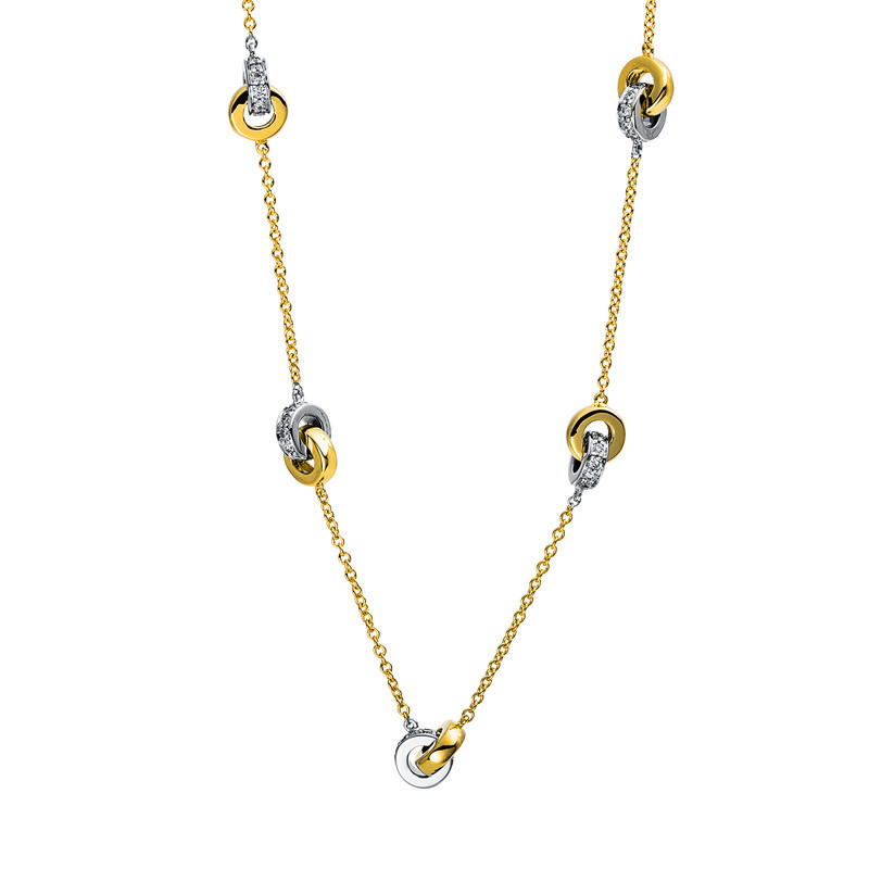 necklace 14 kt YG, 55 diamonds 0,21 ct, G-si, h:4,5 mm, w:6,8 mm, l:42,0 cm