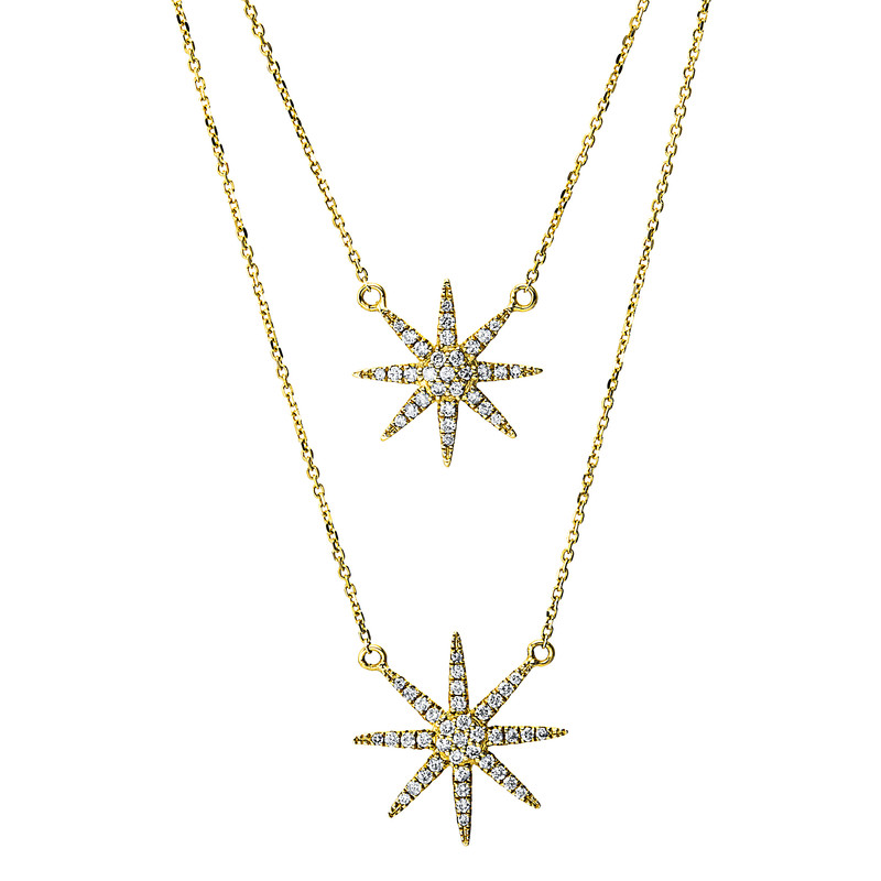 necklace 14 kt YG, 70 diamonds 0,35 ct, G-pi, l:45,7 cm