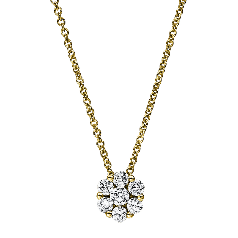 necklace 14 kt YG, 1 diamond 0,09 ct, G-si, 6 diamonds 0,34 ct, G-si, l:42,0 cm