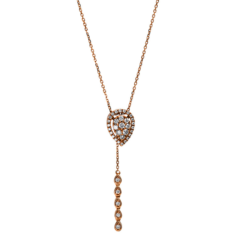 necklace 18 kt RG, adjustable, 3 diamonds 0,08 ct, G-si, 33 diamonds 0,20 ct, G-si, l:45,0 cm
