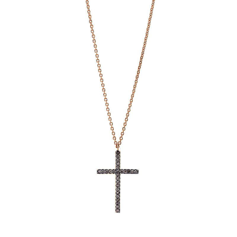 necklace 18 kt RG "cross", setting partly black rhodium