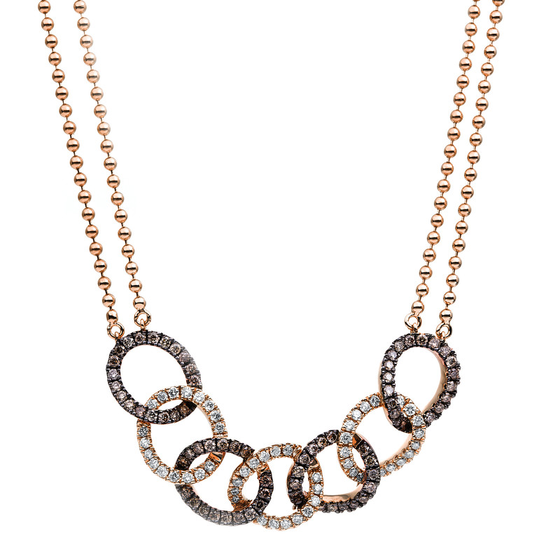 necklace 18 kt RG, for lengthen to 48 cm, 54 diamonds 0,46 ct, G-si, 74 diamonds 0,61 ct, brown, h:43,6 mm, w:9,8 mm, l:45,0 cm