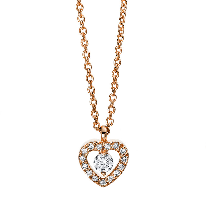 necklace 18 kt RG "heart", with loop, 16 diamonds 0,09 ct, G-si, h:7,7 mm, w:6,1 mm, l:42,0 cm