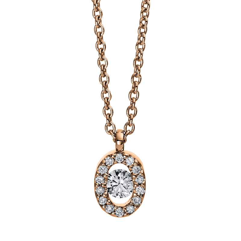 necklace 18 kt RG, with loop, 1 diamond 0,06 ct, G-si, 14 diamonds 0,05 ct, G-si, h:8,0 mm, w:4,6 mm, l:42,0 cm
