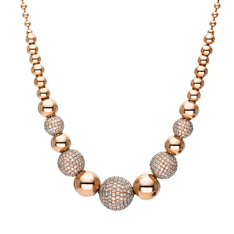 necklace 18 kt RG, 742 diamonds 2,93 ct, G-si, l:45,7 cm
