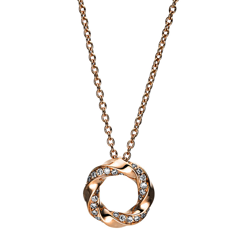 necklace 18 kt RG, 24 diamonds 0,07 ct, G-si, l:42,0 cm, Ø:8,8 mm