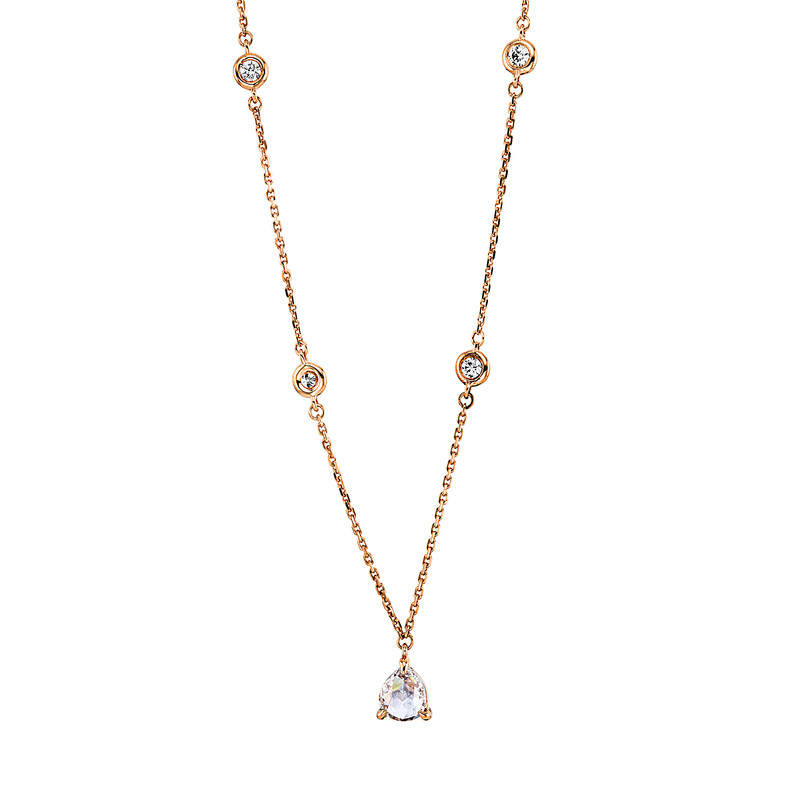 necklace 18 kt RG, 1 rose cut 0,50 ct, G-si, 4 diamonds 0,16 ct, G-si, l:42,0 cm