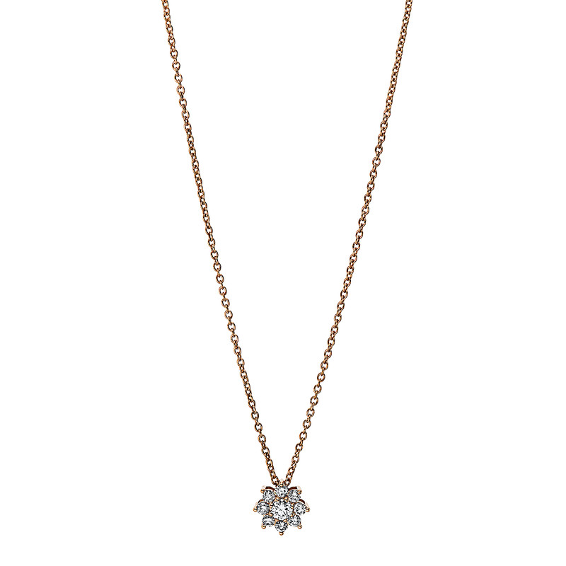 necklace 18 kt RG, 1 diamond 0,07 ct, G-si, 8 diamonds 0,13 ct, G-si, l:45,0 cm