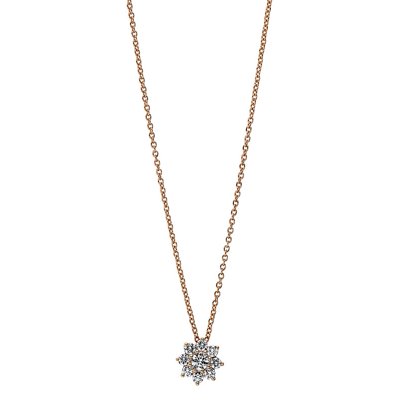 necklace 18 kt RG, 1 diamond 0,10 ct, G-si, 8 diamonds 0,20 ct, G-si, l:45,0 cm