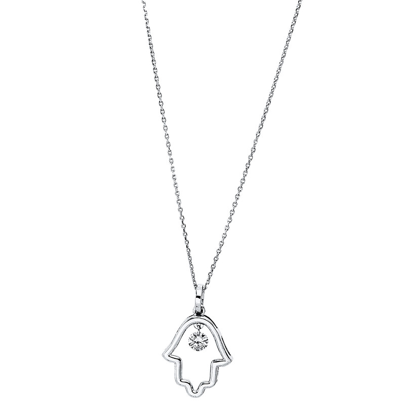 necklace 18 kt WG "hand", 1 diamond 0,10 ct, G-pi, l:42,0 cm