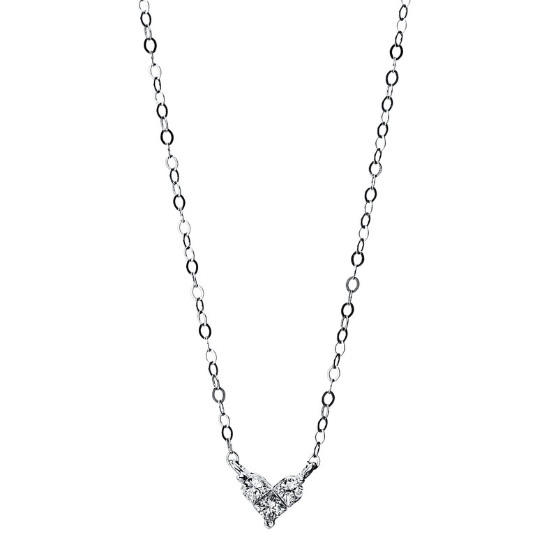 necklace 18 kt WG "heart", 3 princess 0,08 ct, G-si, l:45,7 cm