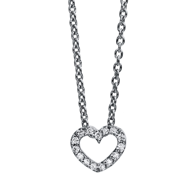necklace 18 kt WG "heart", 15 diamonds 0,03 ct, G-si, h:5,0 mm, w:6,0 mm, l:42,0 cm