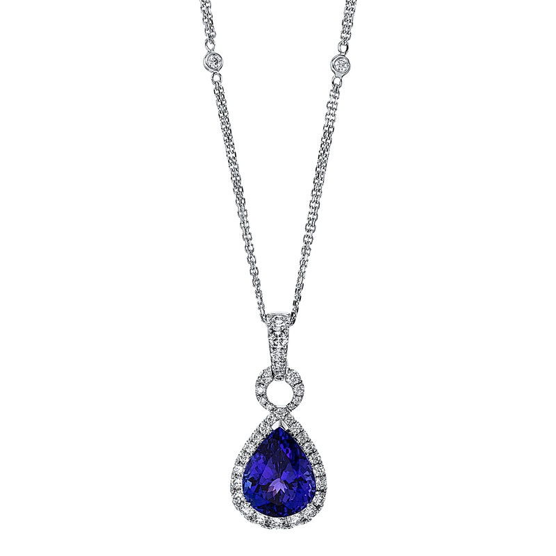 necklace 18 kt WG, with loop, 39 diamonds 1,06 ct, G-si, 1 tanzanite 8,24 ct blue, l:45,7 cm