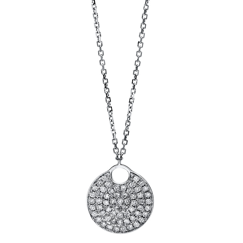 necklace 18 kt WG, with loop, 59 diamonds 0,30 ct, G-si, h:14,9 mm, w:12,3 mm, l:40,5 cm