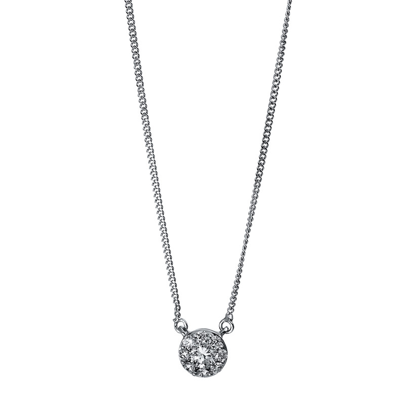necklace 18 kt WG, 1 diamond 0,12 ct, G-si, 8 diamonds 0,13 ct, G-si, l:43,0 cm