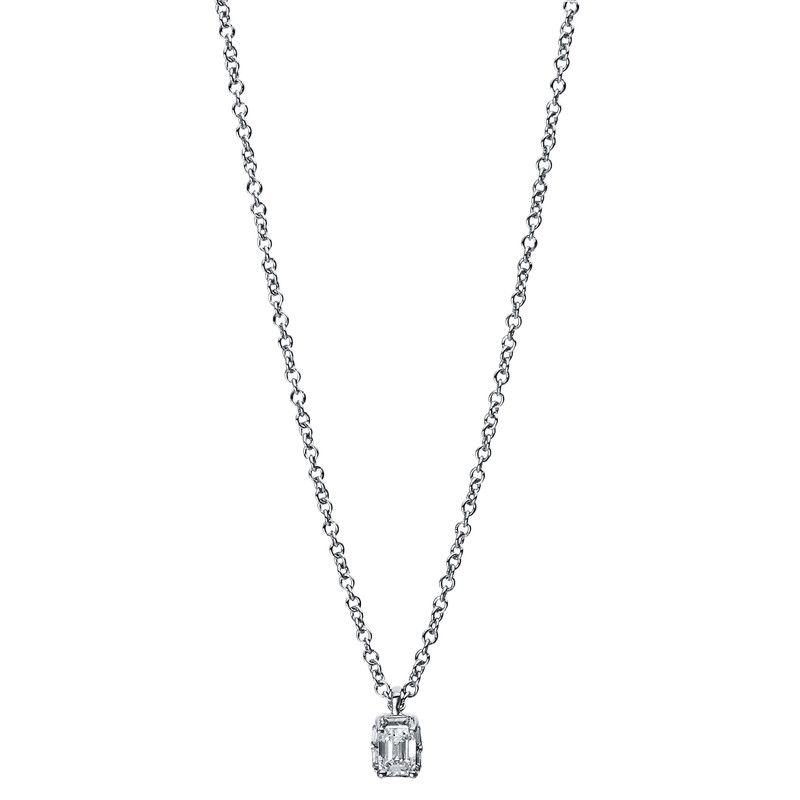 necklace 18 kt WG, 6 baguette 0,04 ct, G-si, 1 em.cut 0,10 ct, G-si, h:5,4 mm, w:3,2 mm, l:45,0 cm