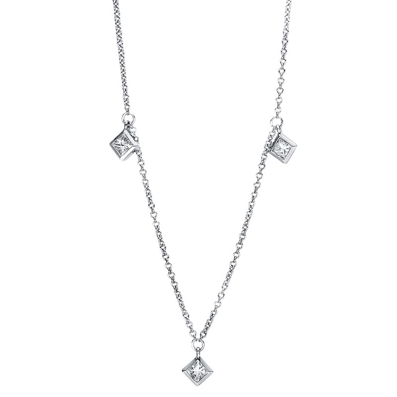 necklace 18 kt WG, 5 princess 0,32 ct, G-si, h:5,4 mm, w:4,2 mm, l:45,0 cm