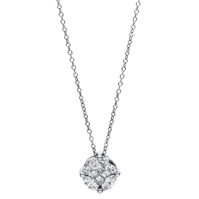 necklace 18 kt WG, 4 marquise 0,42 ct, G-si, 4 princess 0,21 ct, G-si, l:43,2 cm