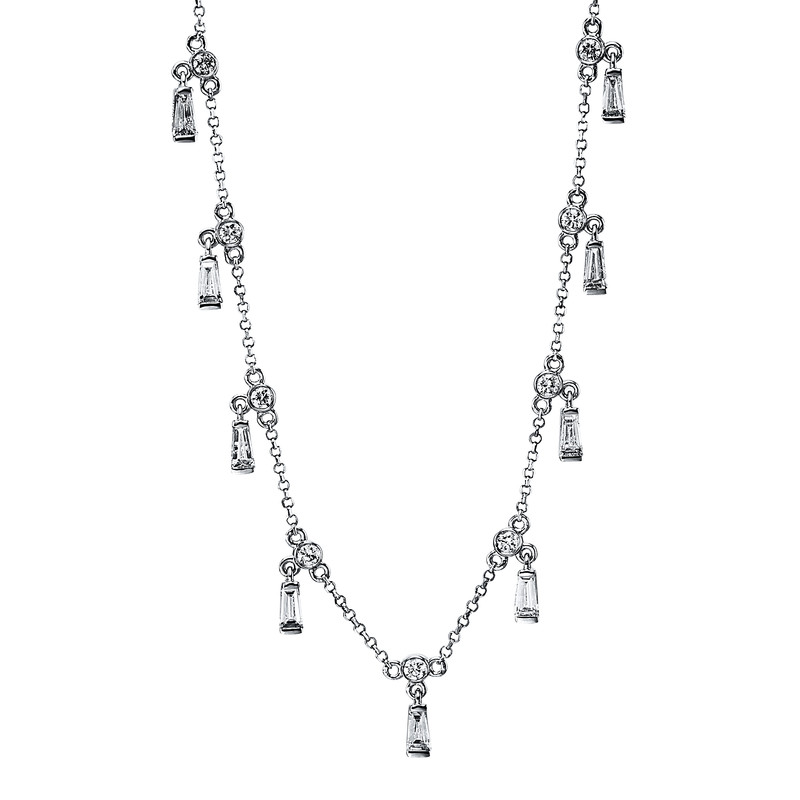 necklace 18 kt WG, 9 tapers 0,60 ct, G-si, 9 diamonds 0,21 ct, G-si, h:8,5 mm, w:2,1 mm