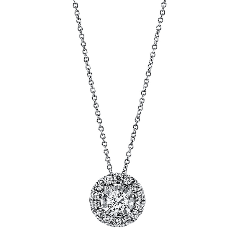 necklace 18 kt WG, 1 diamond 0,25 ct, G-si, 14 diamonds 0,24 ct, G-si, l:45,7 cm, Ø:10,2 mm