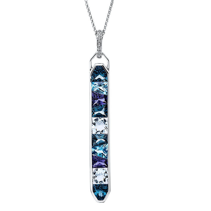 necklace 18 kt WG, 8 diamonds 0,05 ct, G-si, 2 topaz 1,50 ct blue, 2 iolite 1,10 ct blue, 2 aquamarine 2,00 ct blue, 4 topaz 3,10 ct Lond. blue