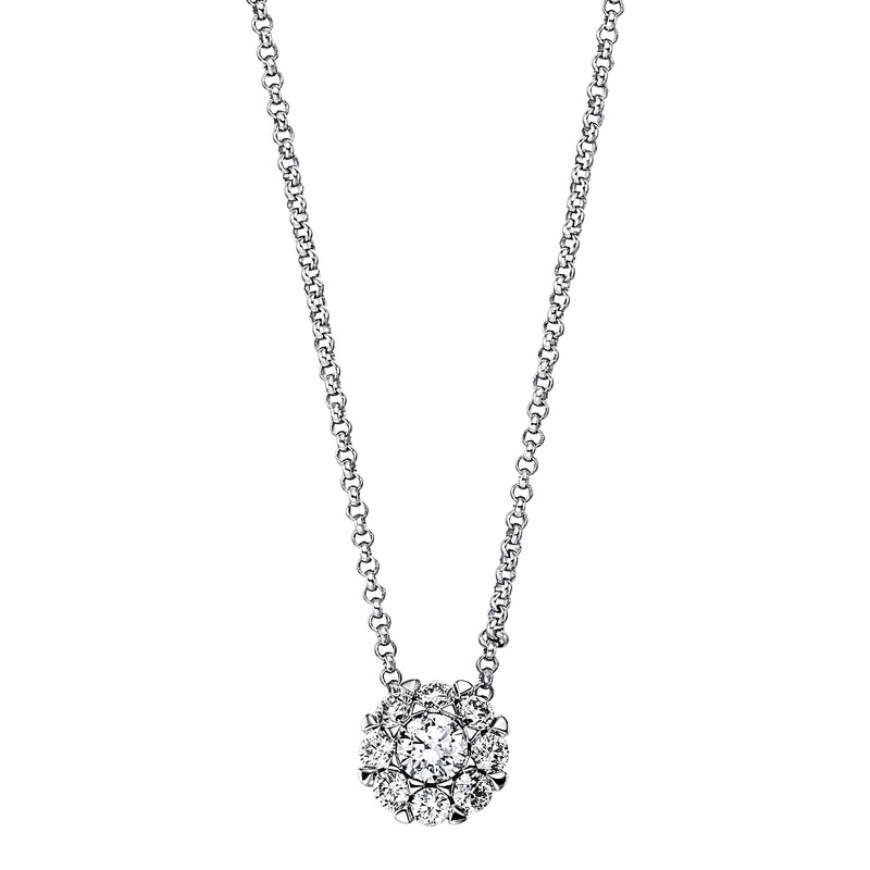 necklace 18 kt WG, 9 diamonds 0,28 ct, G-si, h:7,5 mm, w:7,6 mm, l:47,0 cm