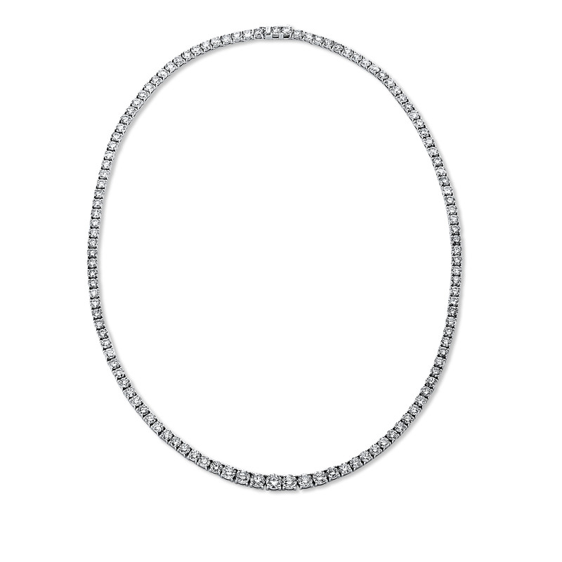 necklace 18 kt WG, 5 diamonds 1,94 ct, G-si, 113 diamonds 21,39 ct, G-si, l:45,7 cm