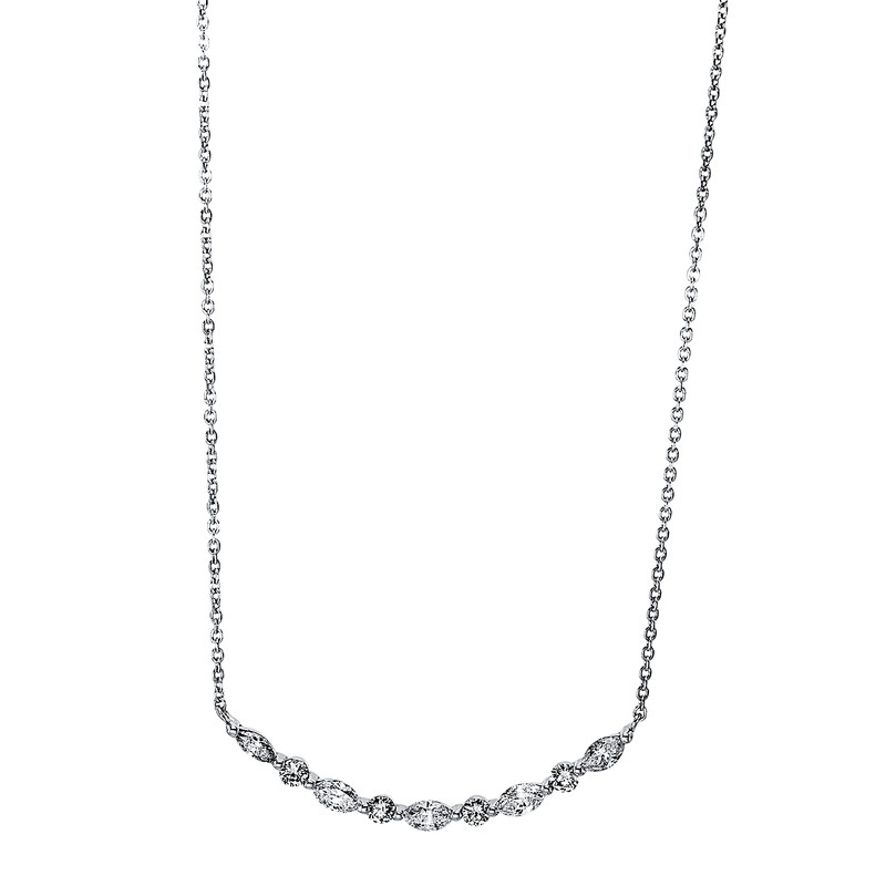necklace 18 kt WG, 5 marquise 0,28 ct, G-si, 4 diamonds 0,13 ct, G-si, l:42,0 cm
