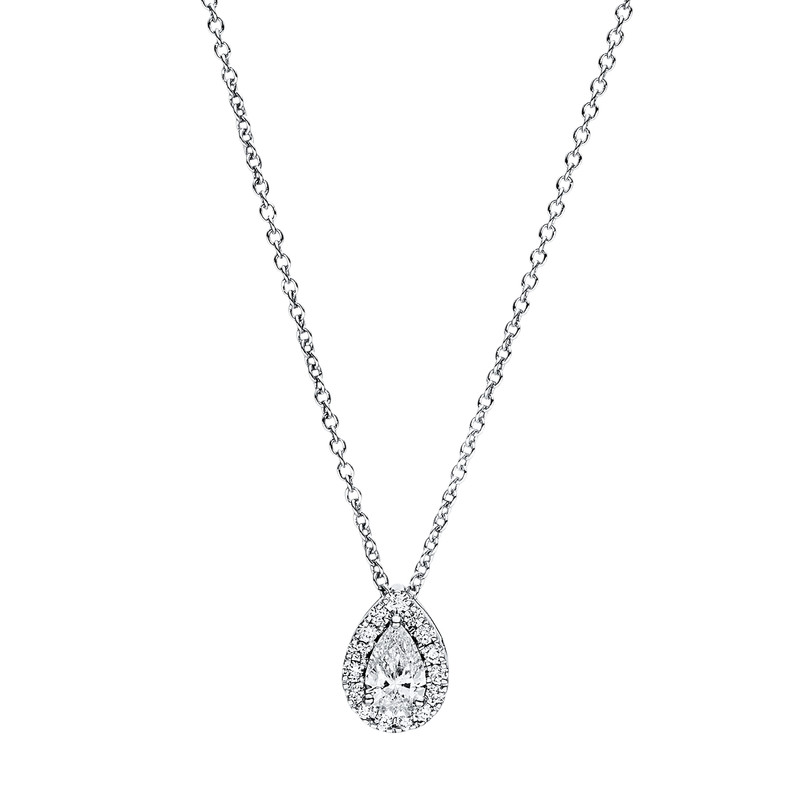 necklace 18 kt WG, 1 pear 0,24 ct, G-si, 15 diamonds 0,07 ct, G-si, l:45,0 cm