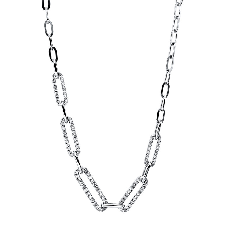 necklace 18 kt WG, 26 diamonds 0,25 ct, G-si, 96 diamonds 0,47 ct, G-si, l:45,7 cm