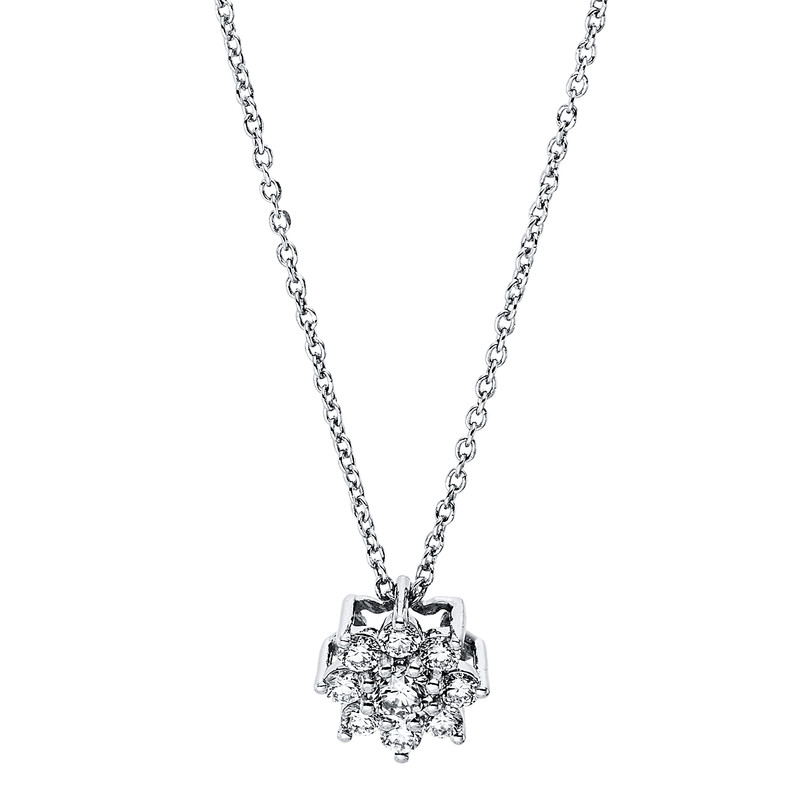 necklace 18 kt WG, 1 diamond 0,10 ct, G-si, 8 diamonds 0,20 ct, G-si, l:45,0 cm