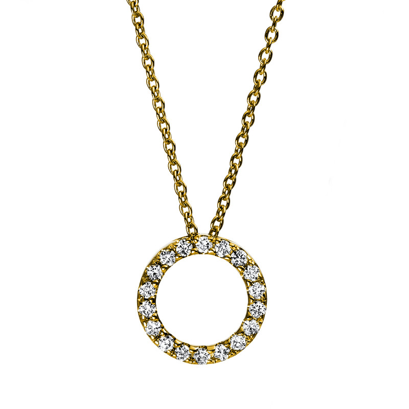 necklace 18 kt YG "circle", 18 diamonds 0,12 ct, G-si, l:42,0 cm