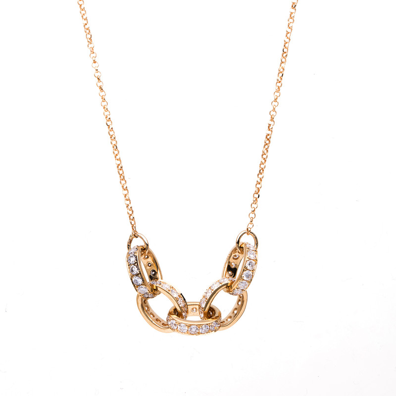 necklace 18 kt YG, 70 diamonds 0,85 ct, G-vsi, h:16,0 mm, w:6,5 mm, l:42,0 cm