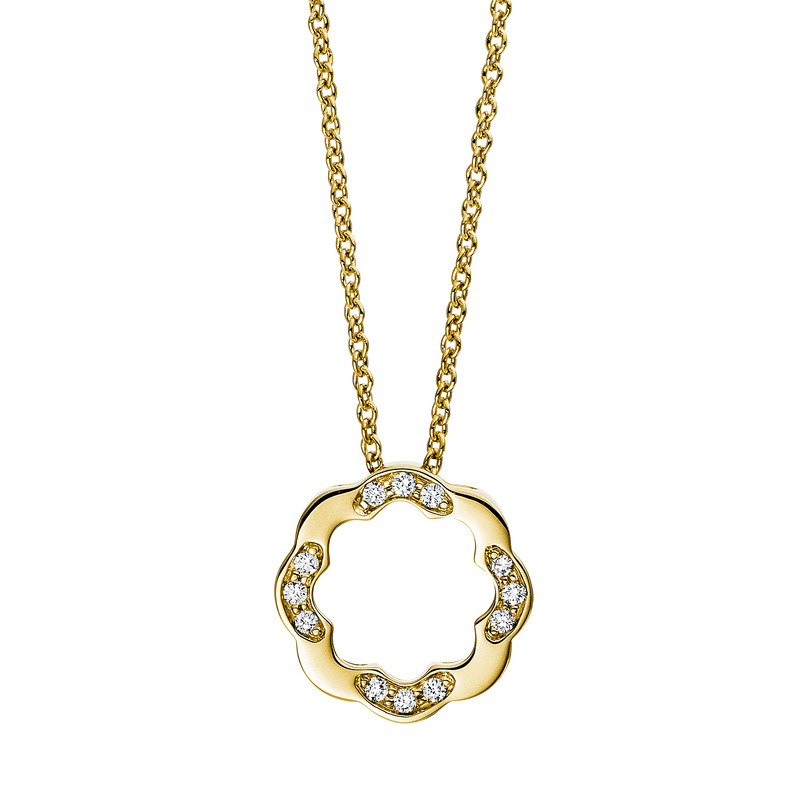 necklace 18 kt YG, 12 diamonds 0,05 ct, G-si, l:42,0 cm