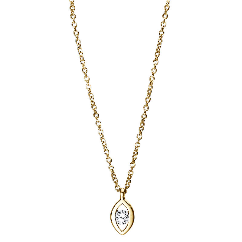 necklace 18 kt YG, 1 diamond 0,08 ct, G-si, h:6,4 mm, w:3,9 mm, l:42,0 cm