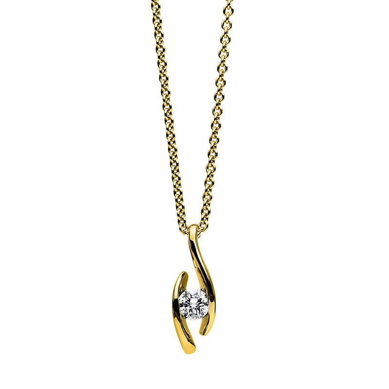necklace 18 kt YG, 1 diamond 0,15 ct, G-si, l:45,0 cm