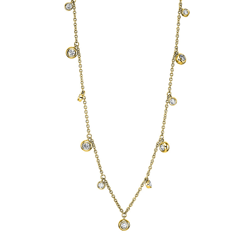 necklace 18 kt YG, 6 diamonds 0,18 ct, G-si, 5 diamonds 0,21 ct, G-si, l:45,0 cm