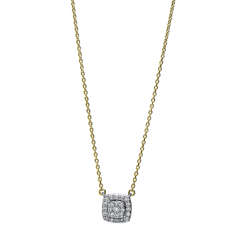 necklace 18 kt YG+WG, 25 diamonds 0,15 ct, G-si, h:7,2 mm, w:7,2 mm, l:45,7 cm