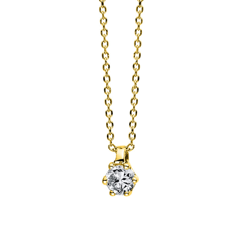 necklace 6 prongs 18 kt YG, 1 diamond 0,10 ct, G-si, l:42,0 cm, th:0,7 mm